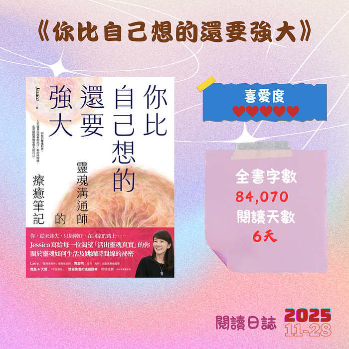 我在看《你比自己想的還要強大》之前其實沒有抱太大的期望,就是覺得看了一本好看的上集,現在再來看下集,沒料到看完《你比自己想的還要強大》卻覺得不得了,這本書真的要大推。