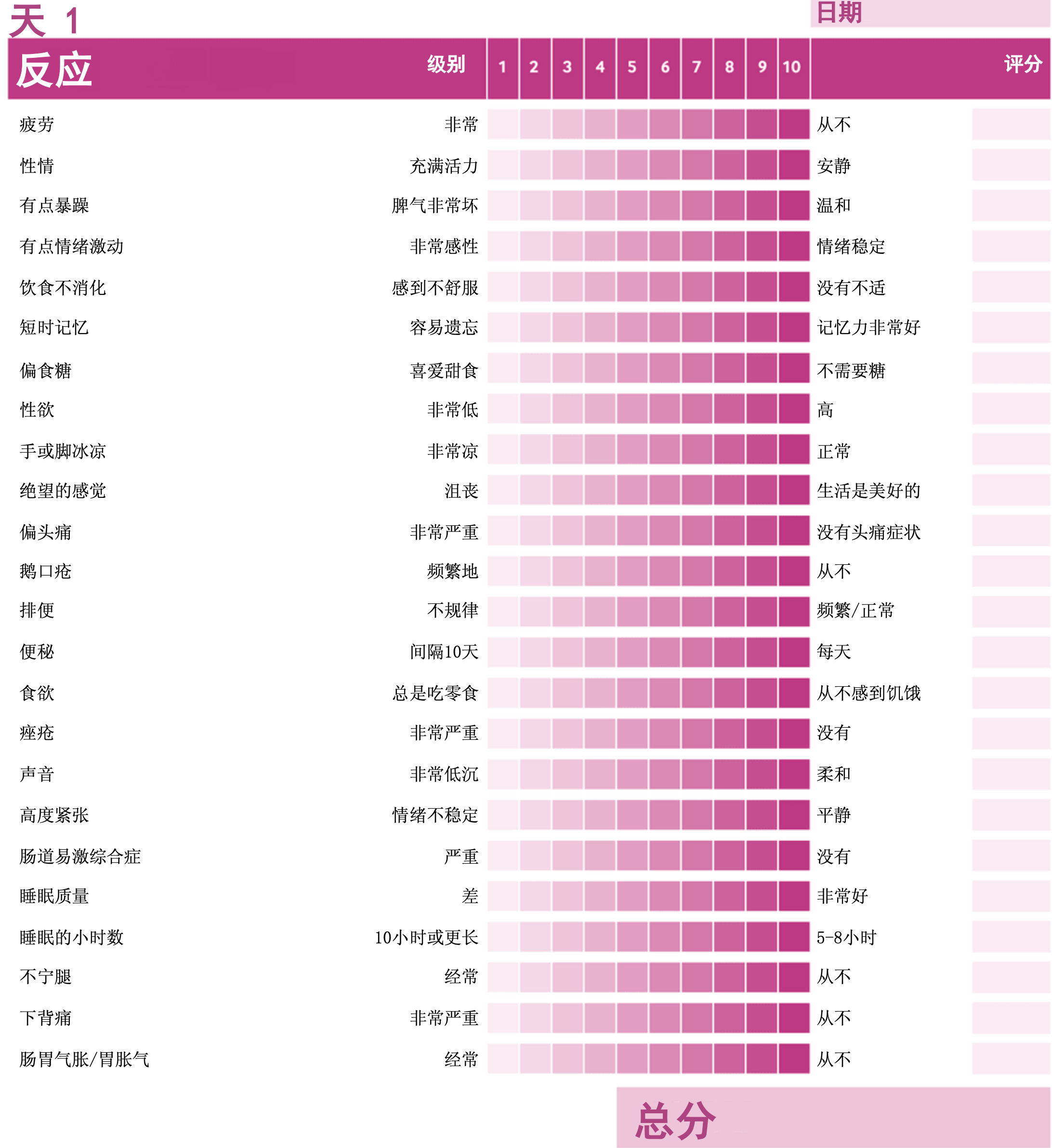 報告中有一份自我檢查表,分別要記下第1天、第30天、第 60天和第90天的結果,看看自己有甚麼改善。